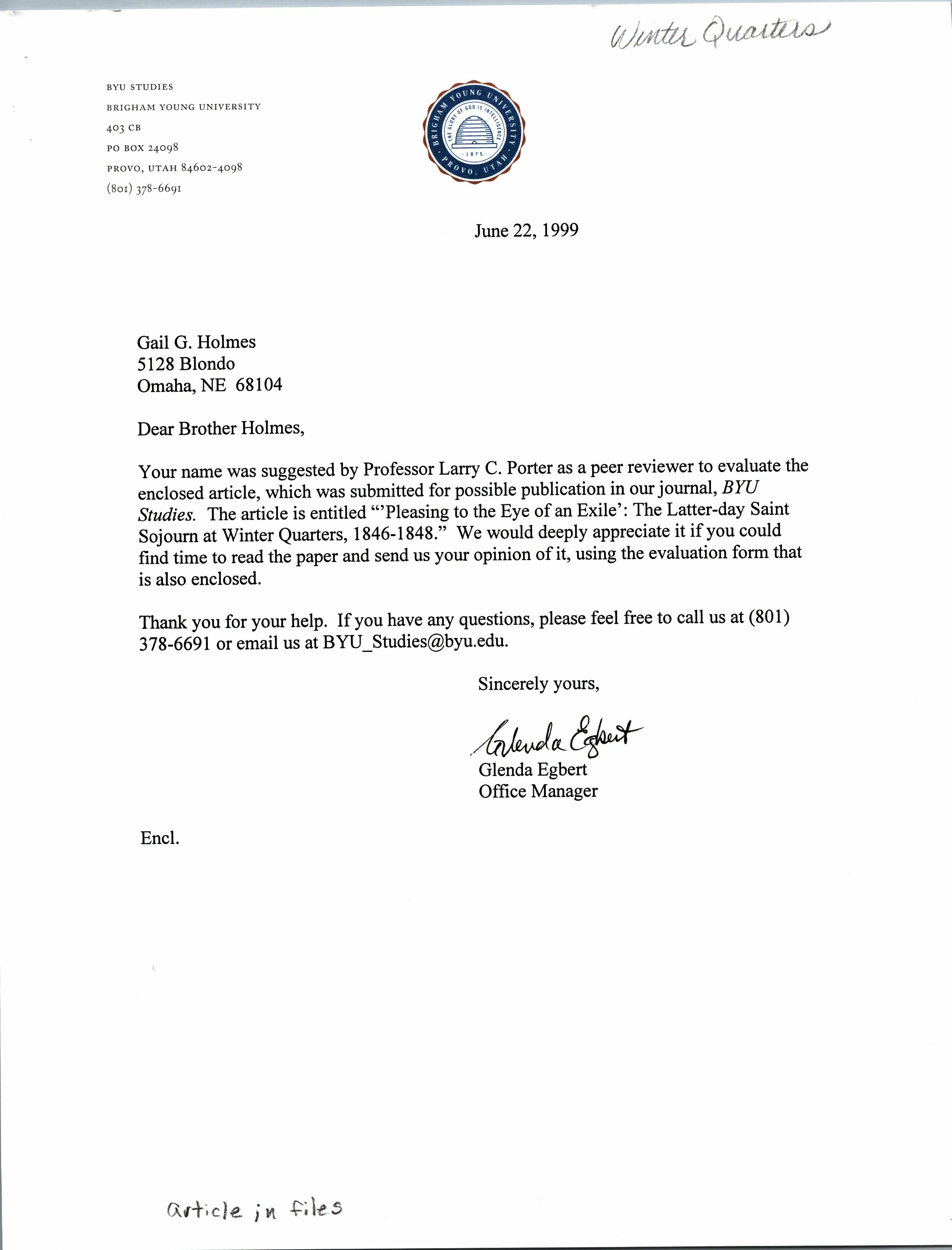enclosed article, which was submitted for possible publication in our journal, BYU