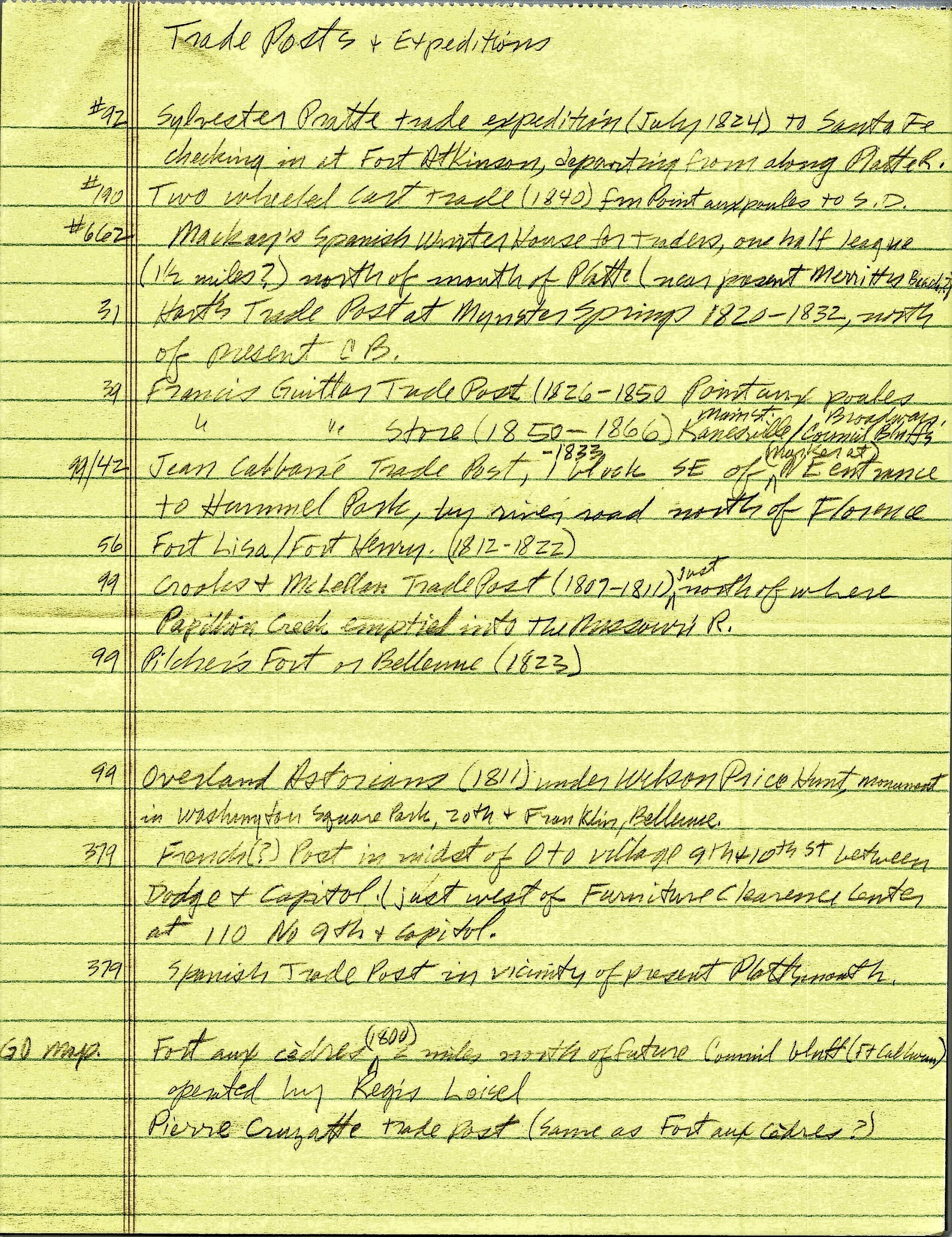 #662 Makey's Spanish winter house for traders, one half league (1/2 miles?) north of mouth of Platte and a plate(near present Merrits Branch?