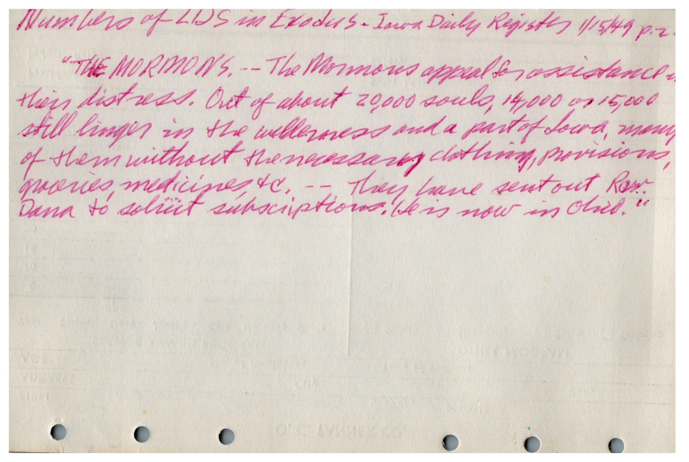 Numbers of LDS in Exodus - Iowa Daily Register 1/15/49 P2