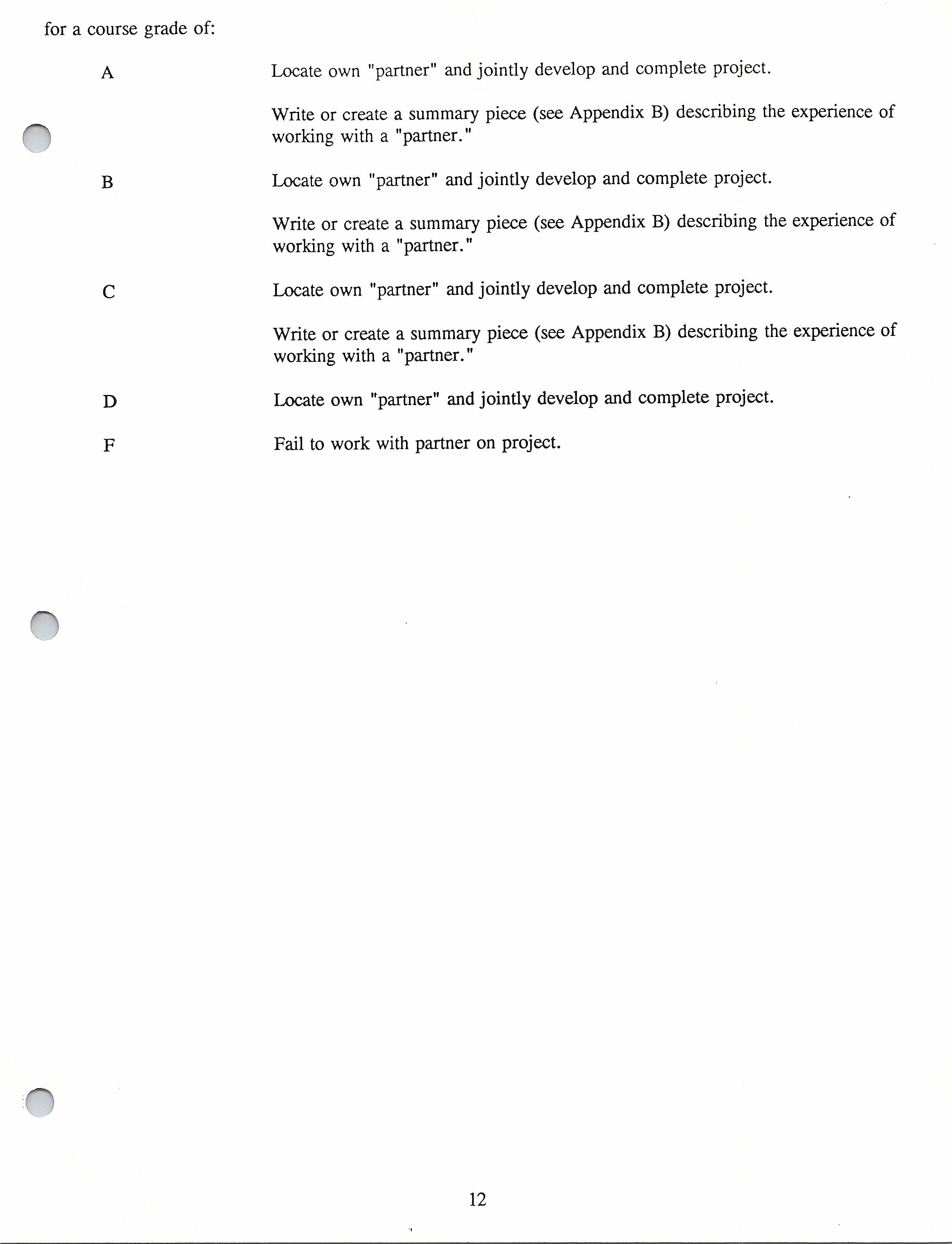 Write or create a summary piece (see Appendix B) describing the experience of working with a "partner."